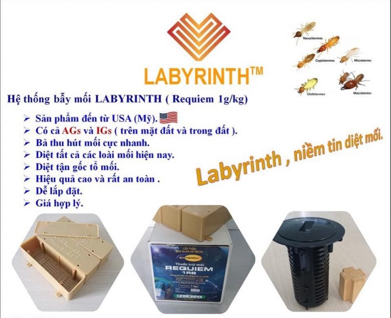 Trạm diệt mối Labythrin (  Ensytex ) kết hợp bả nhử mối Requiemlà công nghệ diệt mối tốt nhất thế giới hiện nay và được nhập khẩu 100% từ USA ( Mỹ – Hoa Kỳ )